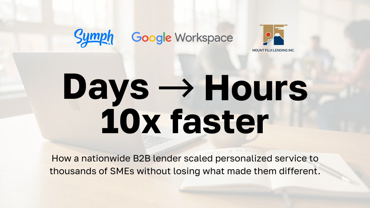 When Mount Fuji Lending set out to scale its ethical, client-first approach to B2B lending nationwide, the challenge wasn't just growing bigger. It was growing better. Serving more SMEs meant more loan applications, more documents, more communication touchpoints, and more security risks. The question was how to handle all of that without losing the personalized service that set them apart. Here's how Symph helped them do it.